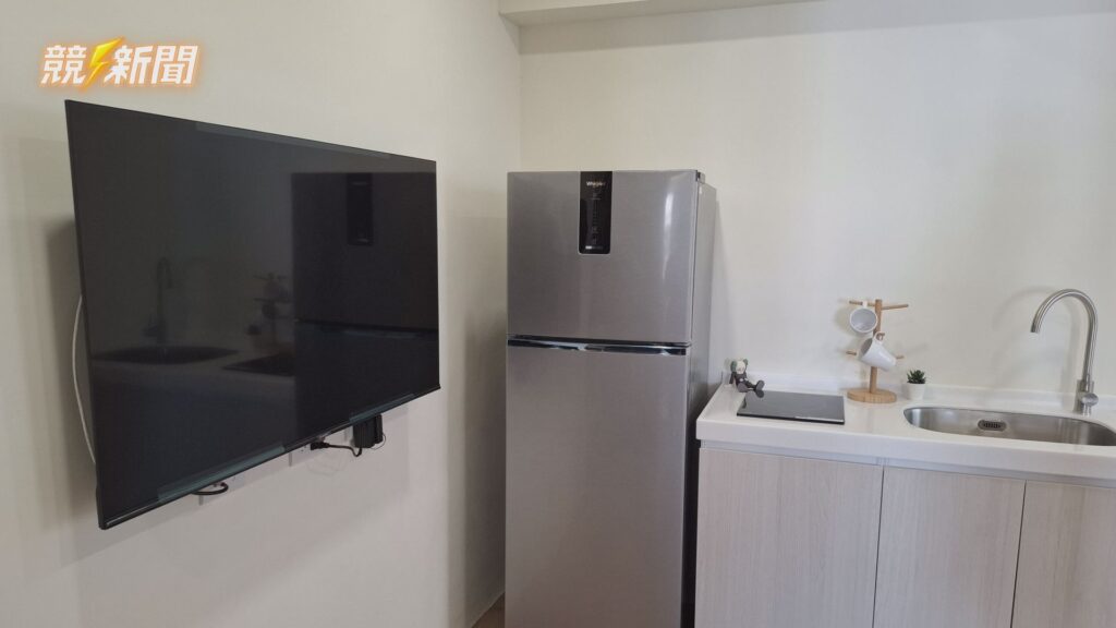室內提供流理臺、電陶爐及冰箱等家電設備,主打「一卡皮箱即可入住」,大幅提升租客進駐意願。(圖:記者羅少君/翻攝)
