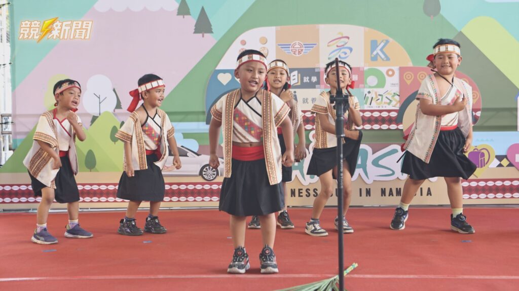 部落幼童穿著傳統服飾帶來活潑的歌舞表演,歡慶那瑪夏區公共運輸服務版圖補上最後一塊拼圖。(圖:記者黃小慧/翻攝)