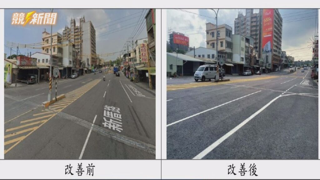 工務單位指出,施工前已完成人手孔下地作業共56處,並同步調整道路標線與車道配置,增設邊線與緩衝空間,提升整體交通安全。工程完成後,路面平整度與辨識度明顯提升,地方居民普遍反映通行更加順暢,整體市容也隨之改善。