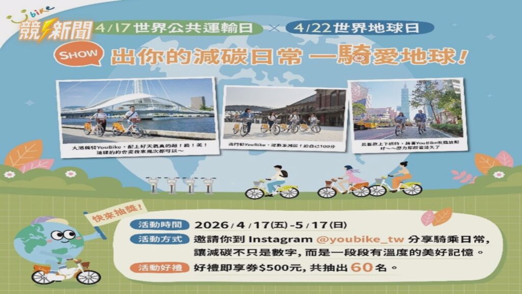 交通局攜手微笑單車舉辦「一騎愛地球」活動,邀請民眾至Instagram分享騎乘日常,抽500元好禮。(圖:競新聞編輯台/翻攝)