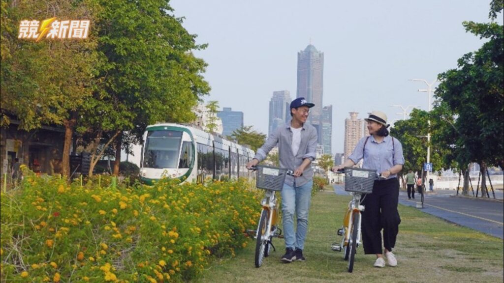 民眾騎乘YouBike穿梭於高雄港灣岸邊,搭配捷運與輕軌轉乘,落實綠色低碳的休閒生活。(圖:競新聞編輯台/翻攝)