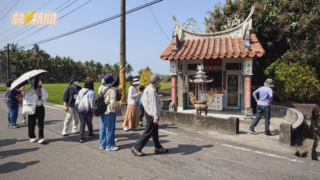 藍天白雲下,民眾沿著美濃田間細路前行,探訪守護土地的伯公信仰。透過實地走讀,沿著細路尋香,品味客庄信仰與自然共生的slow life步調。(圖:記者李佳龍/翻攝)