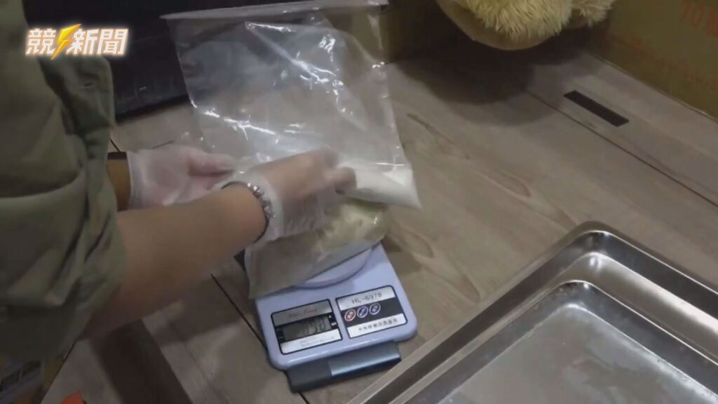 警方現場查扣逾一公斤的依托咪酯原料,及時攔阻了上萬顆毒煙彈流入市面。(圖:記者李佳龍/翻攝)
