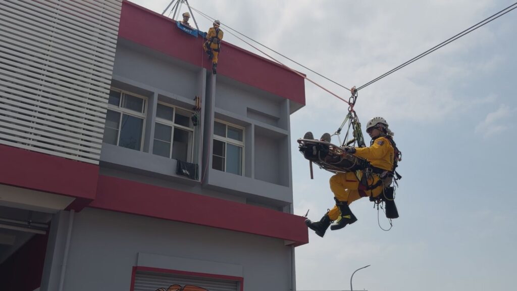 特搜隊員在典禮現場展示精湛的高空繩索救援技術,體現後勁新據點具備應對複雜地形與高難度災害的專業能力。(圖:記者李佳龍/攝)