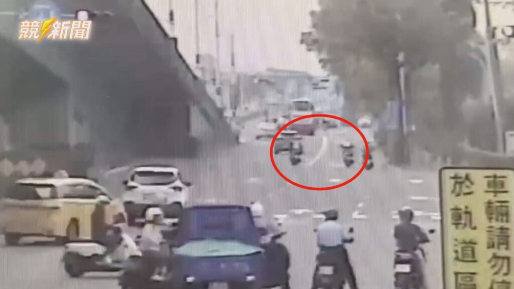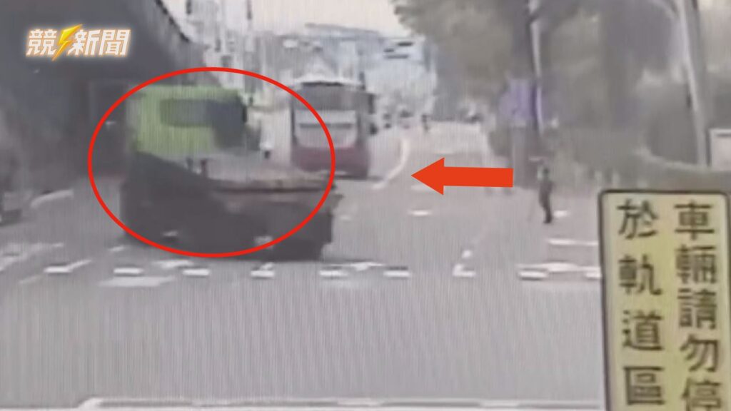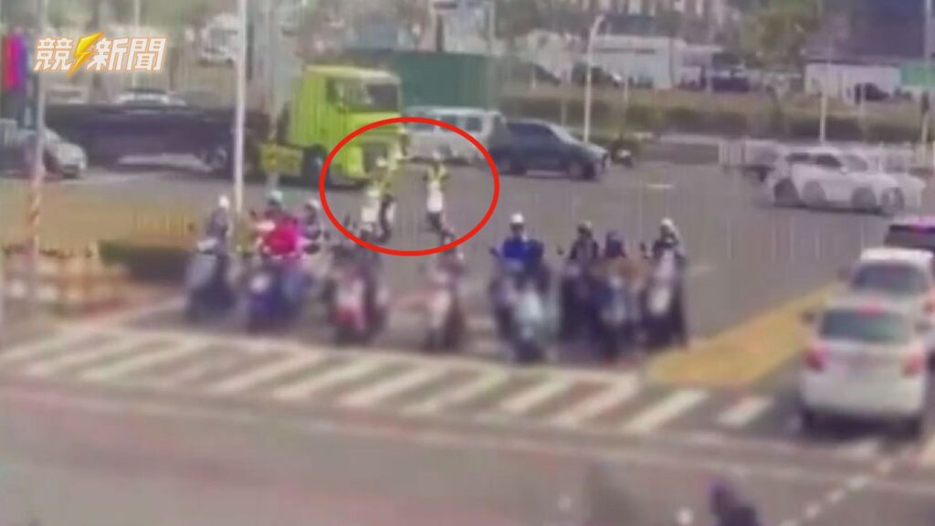 大型曳引車違規酒駕且設備失效,在車流量大的路口穿梭,對周邊機車騎士及行人構成嚴重威脅,警員趕緊以機車追緝。(圖:記者李佳龍/翻攝)