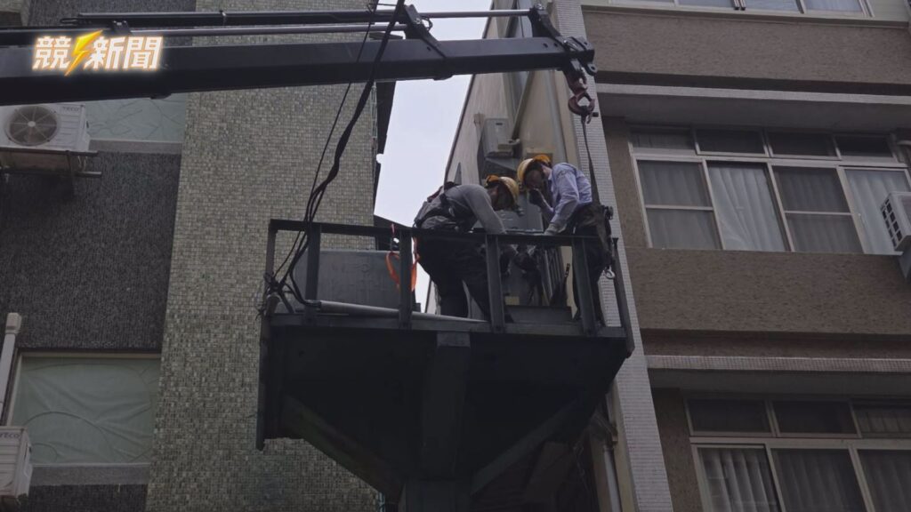 維修人員登上升降桶進行高空作業,針對故障設備進行更換,力求在最短時間內恢復全區供電。(圖:記者李佳龍/翻攝)