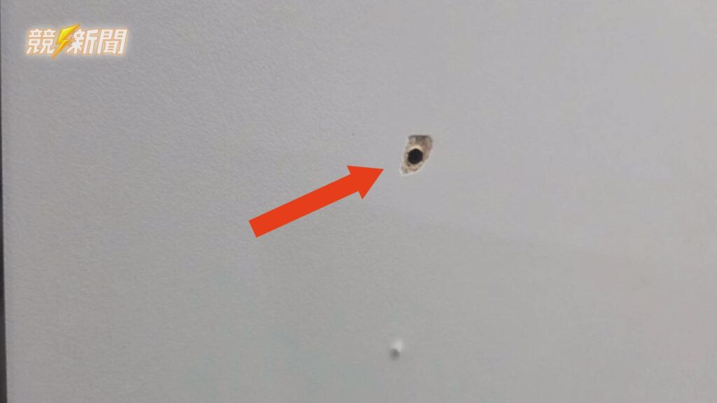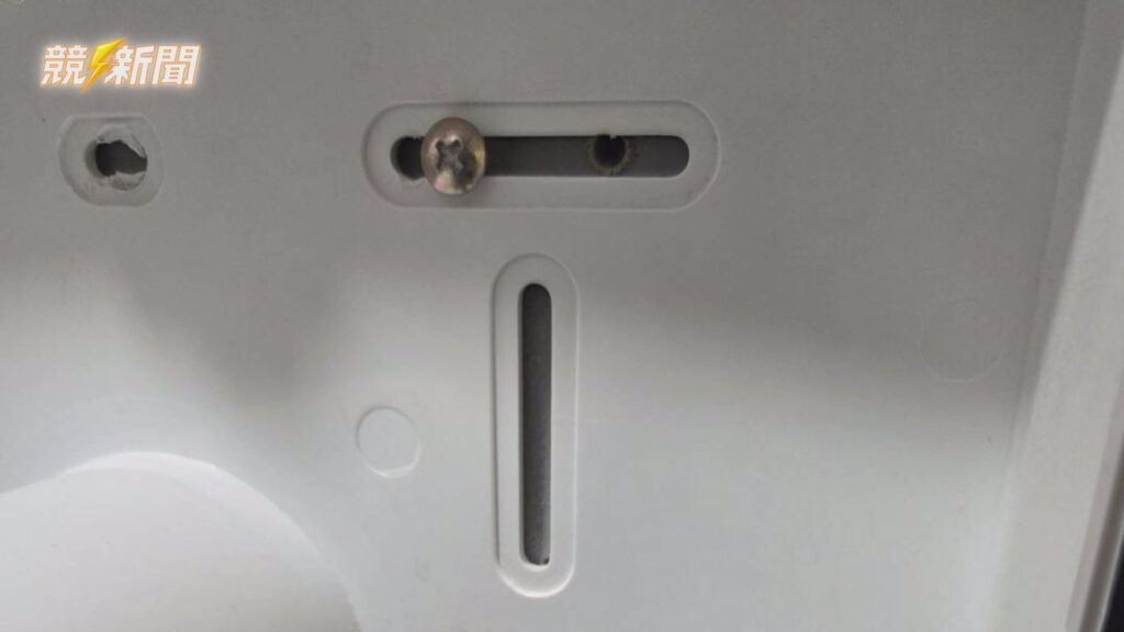 衛生紙架固定螺絲過長,造成視覺上疑似鏡頭孔洞的誤會,實為虛驚一場。(圖:記者李佳龍/翻攝)