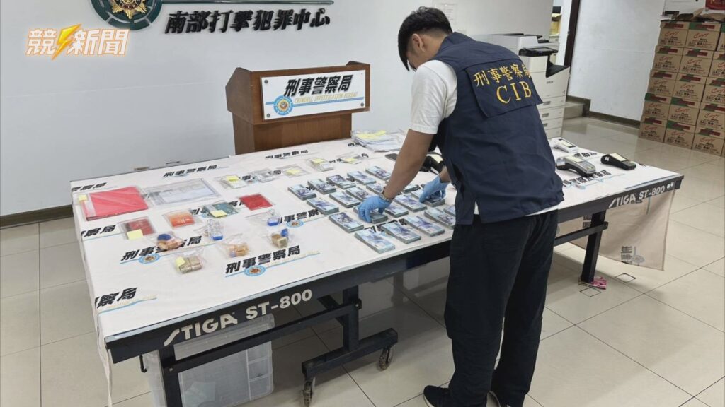 刑事局專案小組查獲不法證物,有大量千元現鈔、點鈔機、刷卡機及相關帳冊等犯罪工具。(圖:記者李佳龍/翻攝)