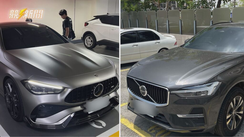 警方搜索行動中扣押詐團名下之多部百萬名貴轎車,這些車輛疑為不法所得所購置。(圖:記者李佳龍/翻攝)
