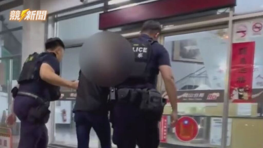 31歲朱嫌身分經查為竊盜通緝犯,警方當場將其上銬帶回依法解送歸案。 (圖:記者李佳龍/翻攝)