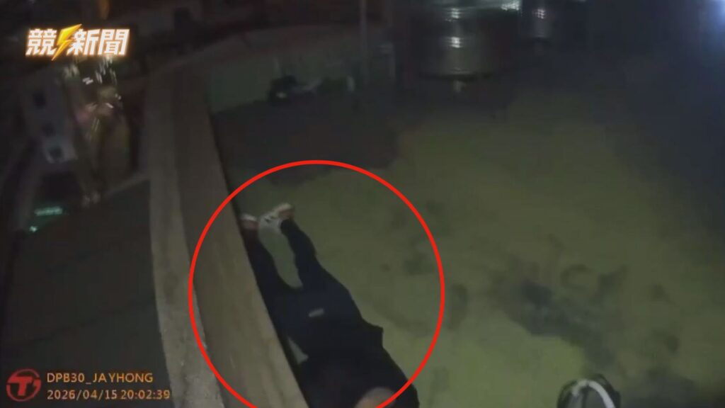 警方於鄰近民宅頂樓成功壓制朱嫌,朱嫌被發現時,一度緊張到說不出話。 (圖:記者李佳龍/翻攝)