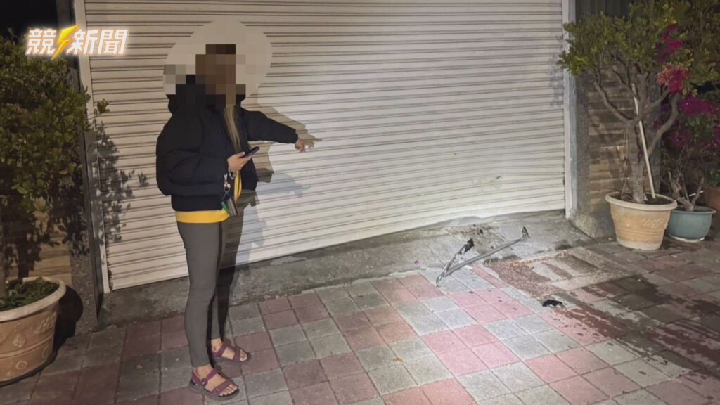 高雄大寮區和發路13日凌晨發生一起自小客車失控自撞事故,車輛強大撞擊力導致路邊停放車輛與住家鐵捲門受損。(圖:記者羅少君/翻攝)