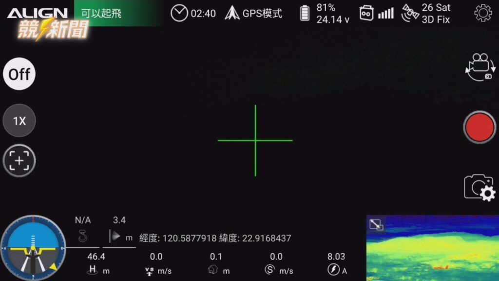 消防局利用空拍機的紅外線熱顯像技術監測火場,透過經緯度精確定位殘火位置,協助地面前進指揮所調度搜救人力。(圖:記者李佳龍/翻攝)