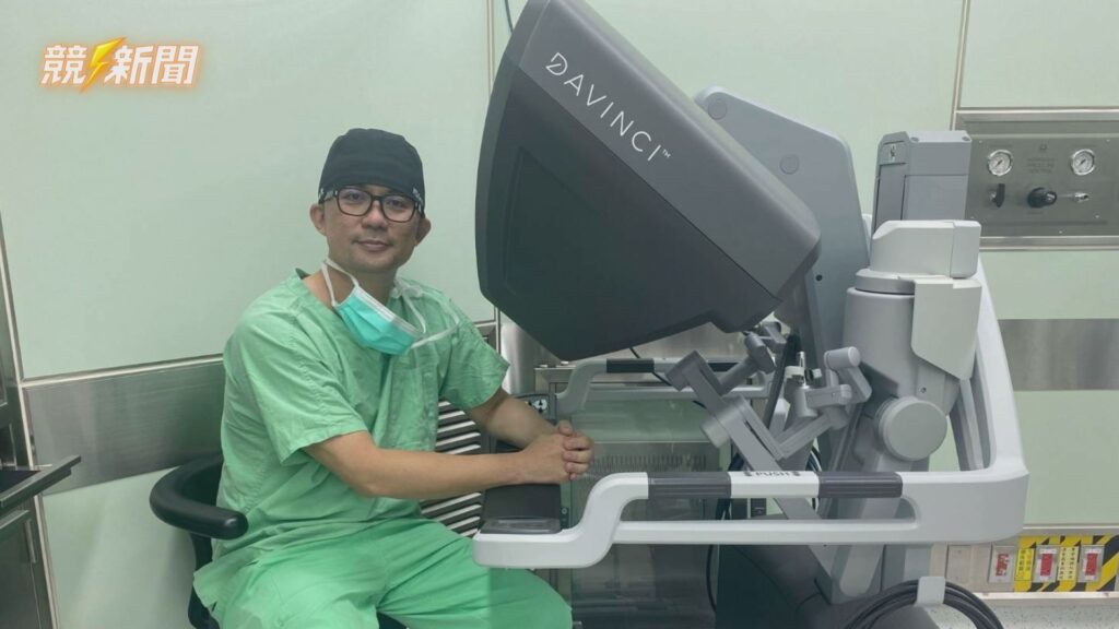 蔡鍇隆醫師操作達文西手臂,透過精準微創技術為患者切除侵犯輸尿管的直腸癌,成功保住腎臟功能。(圖:記者李佳龍/翻攝)