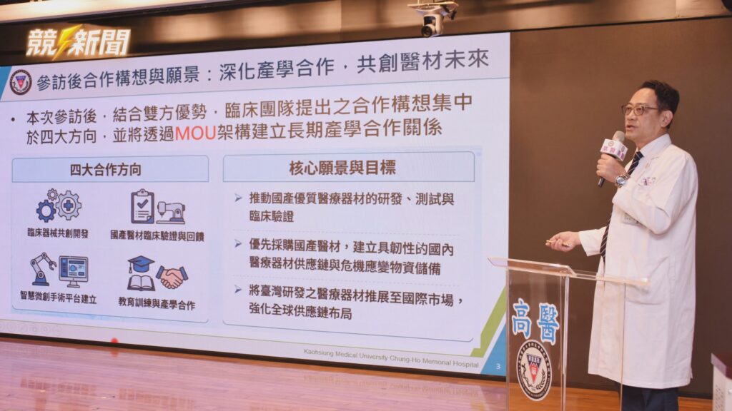 高醫與台灣先進合作打造韌性醫療國家隊,雙方已在外科、婦產部及骨科等多個臨床領域啟動合作,提升台灣醫療自主能量。(圖:記者李佳龍/翻攝)