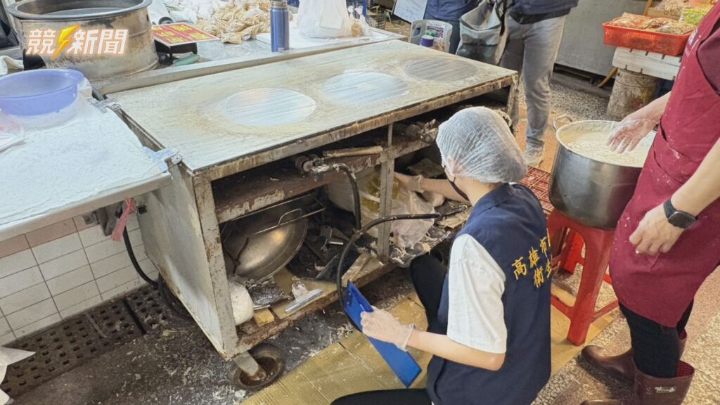 稽查人員詳細記錄攤商作業區衛生狀況,發現多項缺失不符GHP規範,當場勒令業者停業7天並限期改善。(圖:記者李佳龍/翻攝)