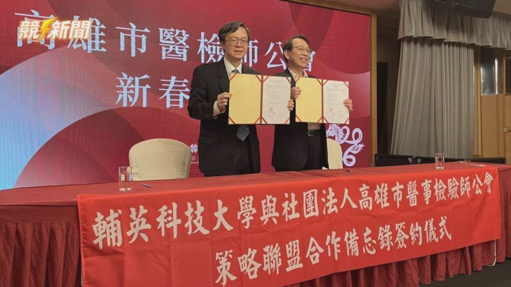 輔英醫健學院院長陳中一(左)與高雄市醫檢師公會理事長張喬棠(右)簽署合作備忘錄,攜手培育實戰型醫檢人才。(圖:記者李佳龍/翻攝)