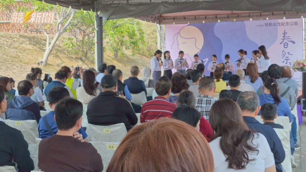 今年活動融入更多在地與多元參與元素,由中洲國民小學學童以直笛吹奏望春風與四季紅揭開序幕,清亮樂音為典禮增添柔和氛圍;隨後由視障歌手呂湘婷彈唱我只在乎你與月亮代表我的心等熟悉旋律,藉由音樂串聯不同世代記憶,也讓現場民眾重新感受台灣產業發展背後女性勞動者長年默默付出的身影。