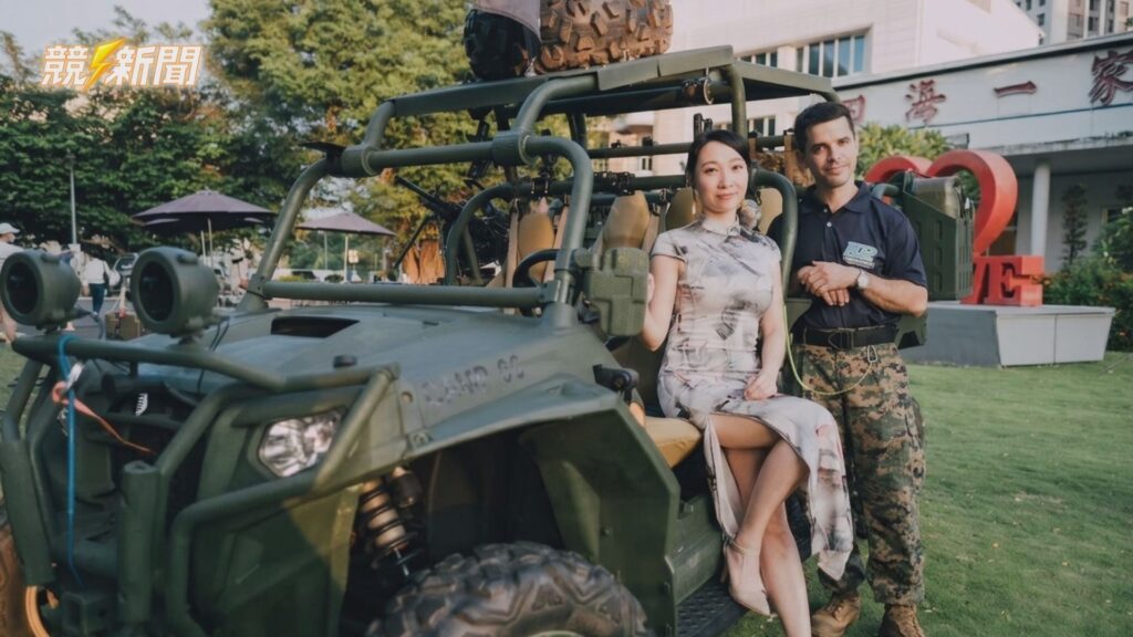 活動現場展示軍用戰術車輛,吸引民眾近距離接觸國防裝備。知名美聲主持人羅少君特別穿著古典旗袍現身,展現眷村文化與軍事剛毅美感的融合。(資料畫面:記者李佳龍/翻攝)