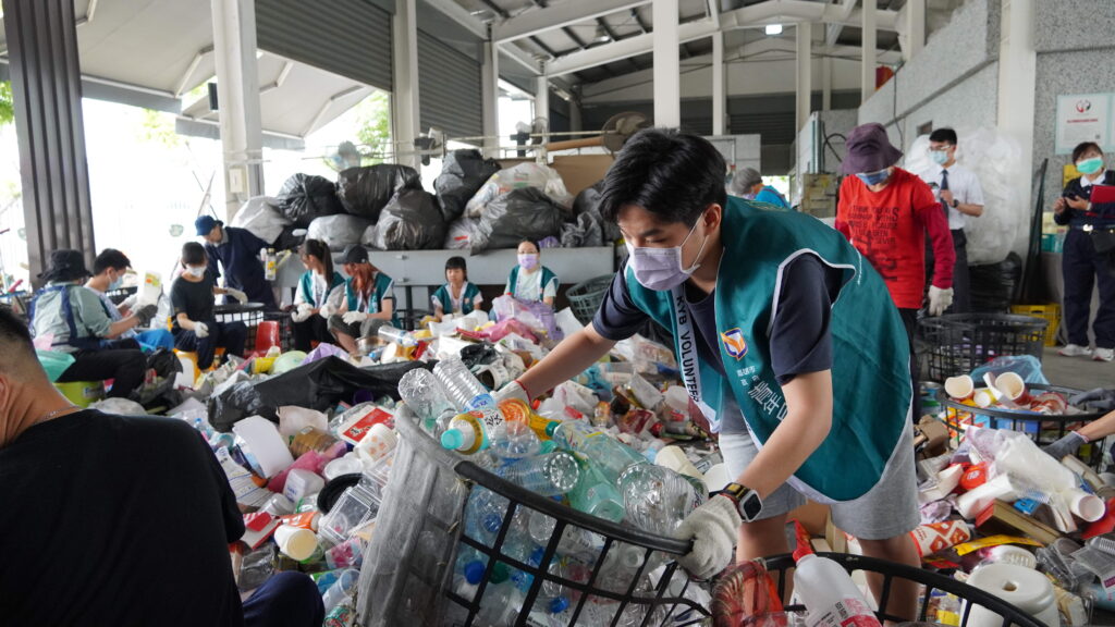 青年志工實地參與分類作業,將寶特瓶等回收資源依照材質細分,了解廢棄物再利用的完整流程。(圖:記者羅少君/翻攝)