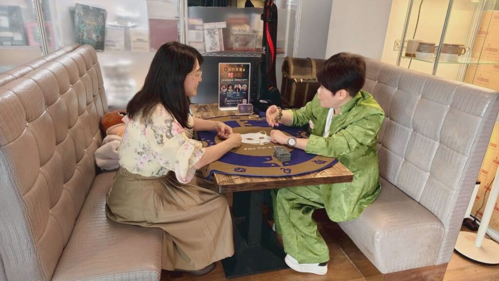 茶會現場特別規劃占卜互動環節,邀請專業占卜師為會員提供年度運勢諮詢,增添趣味話題。(圖:記者李佳龍/攝)