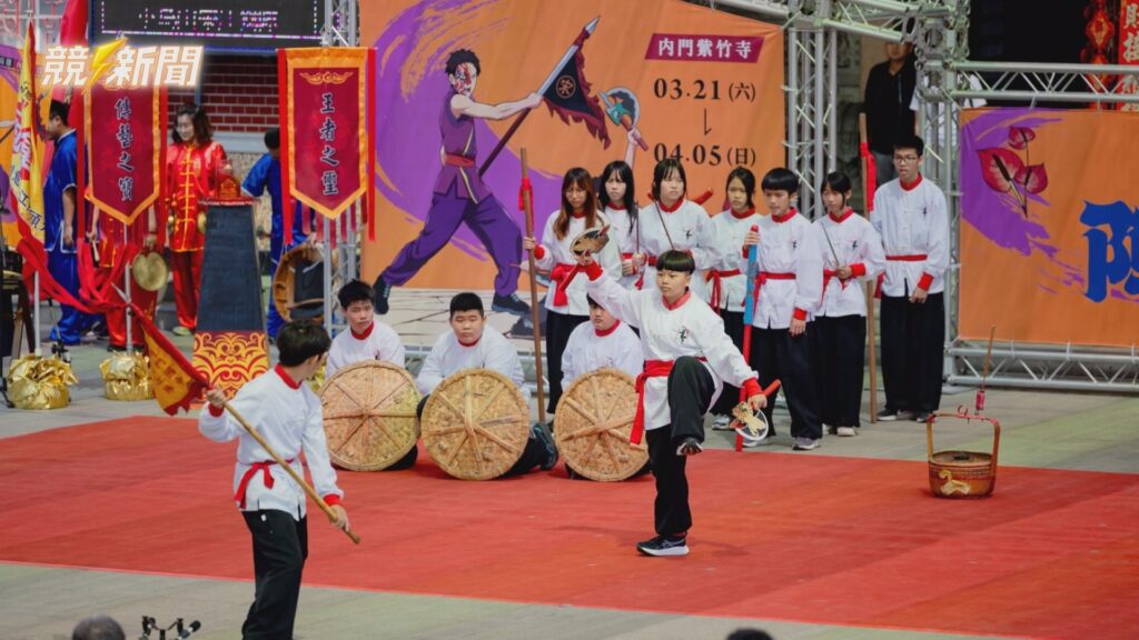 2026高雄內門宋江陣記者會由「內門國中宋江陣」帶來熱血沸騰的開場表演,展現傳統藝陣文化的活力傳承。(圖:記者羅少君/翻攝 )