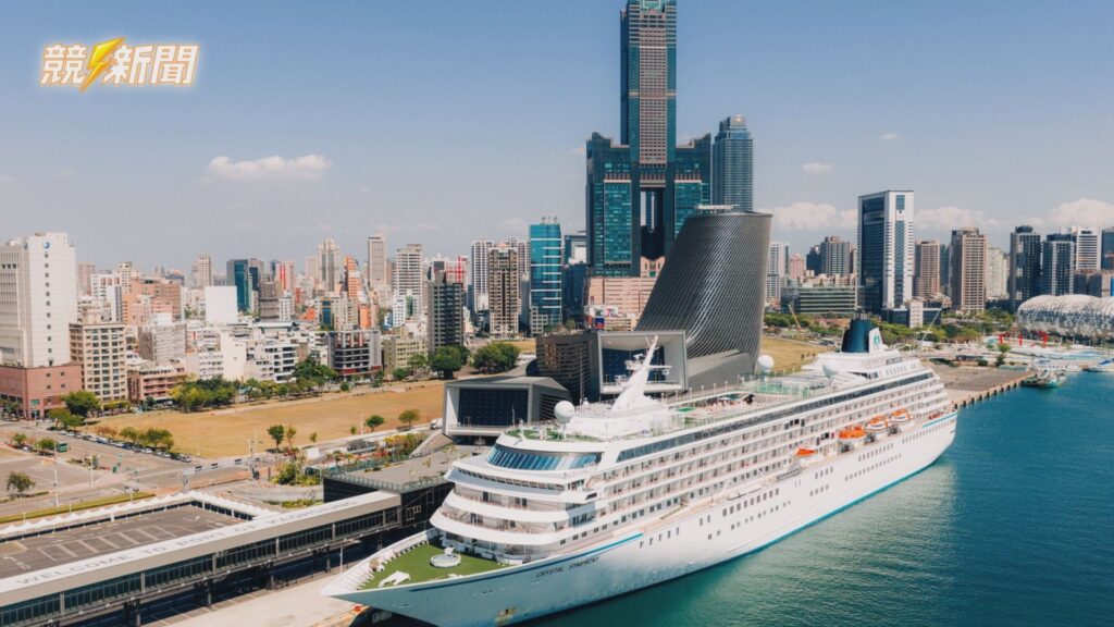 高端郵輪品牌「水晶合韻號」(Crystal Symphony)於18日上午首度駛入高雄港,成為今年第五艘首航高雄的國際郵輪。 (圖:記者李佳龍/翻攝)