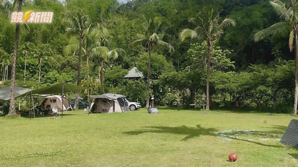 六龜區「輕風椰林露營場」環境清幽,椰林與綠地交織出熱帶度假氛圍,是觀光局積極輔導合法的優質場地之一。(圖:記者羅少君/翻攝)