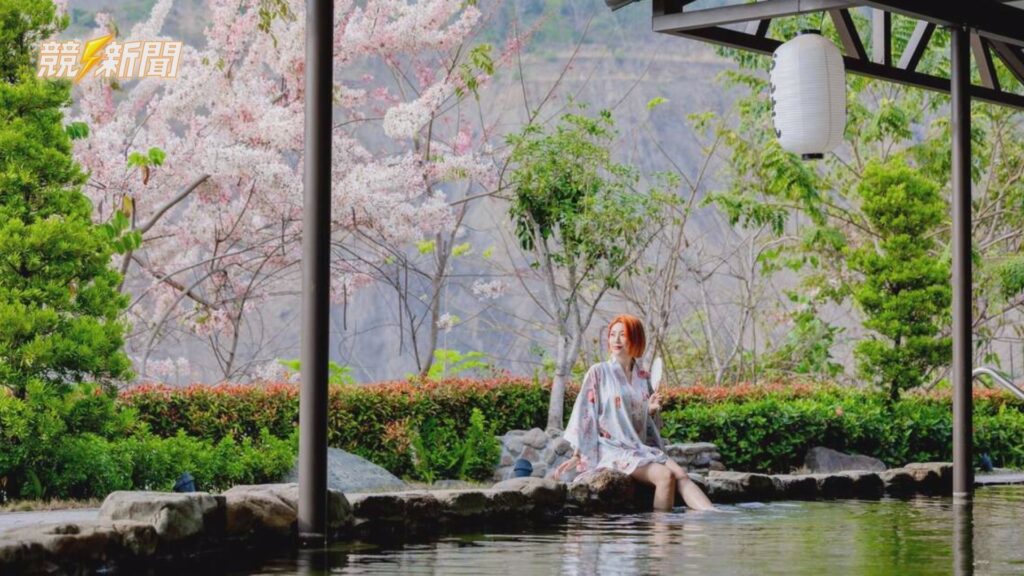 遊客在寶來溫泉區一邊享受優質湯泉放鬆身心,一邊欣賞周邊如詩如畫的花海美景。(圖:記者羅少君/翻攝)