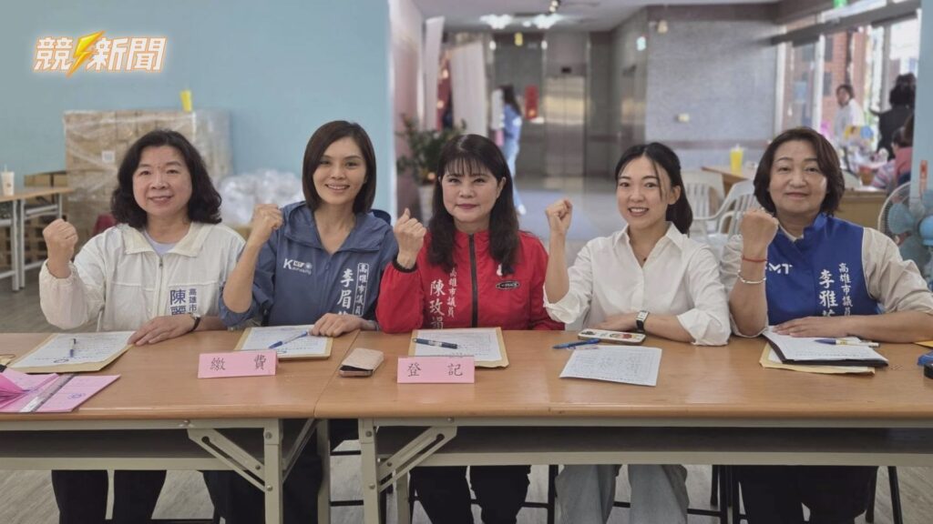 第四選區左楠區現任議員李眉蓁、陳麗珍、李雅芬、白喬茵、陳玫娟,相約聯合登記,展現團結女力精神,力拚五席全壘打。(圖:記者李佳龍/翻攝)