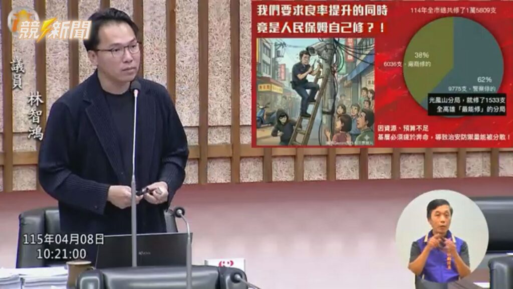 另外林智鴻質疑,警察原本應專注在治安勤務,卻得投入大量時間維修監視器,長期恐影響第一線執勤效率。他也提到,目前市警局使用中的部分監視器品牌,約18%曾涉及中國貼牌爭議,而差勤管理使用的指紋與臉部辨識設備,也曾被質疑有中國洗產地疑慮,認為高雄若要推動智慧警政,除了系統升級,設備來源、畫質與資安管理都必須同步檢討及修正。