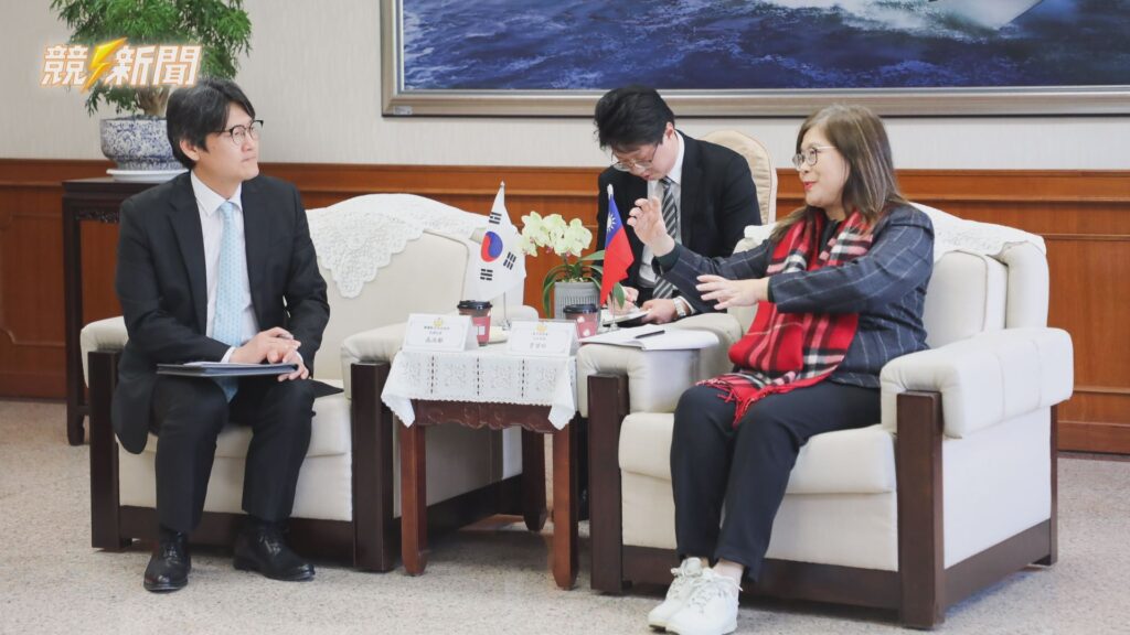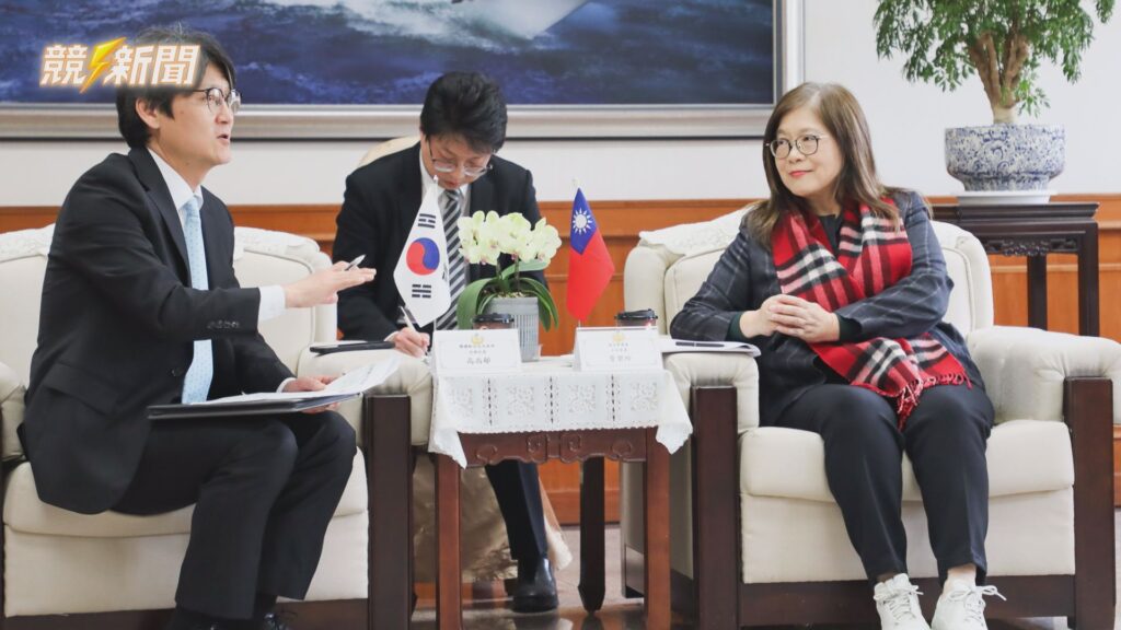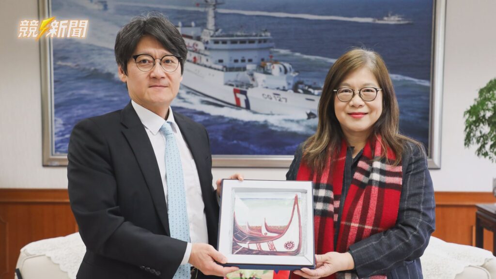 駐臺北韓國代表部代理代表高尚郁(左)12日率團拜會海洋委員會,與海委會主委管碧玲(右)就區域海洋安全與海域治理等議題展開深度交流。(圖:記者黃小慧/翻攝)